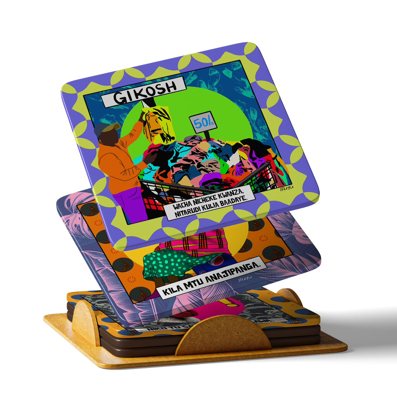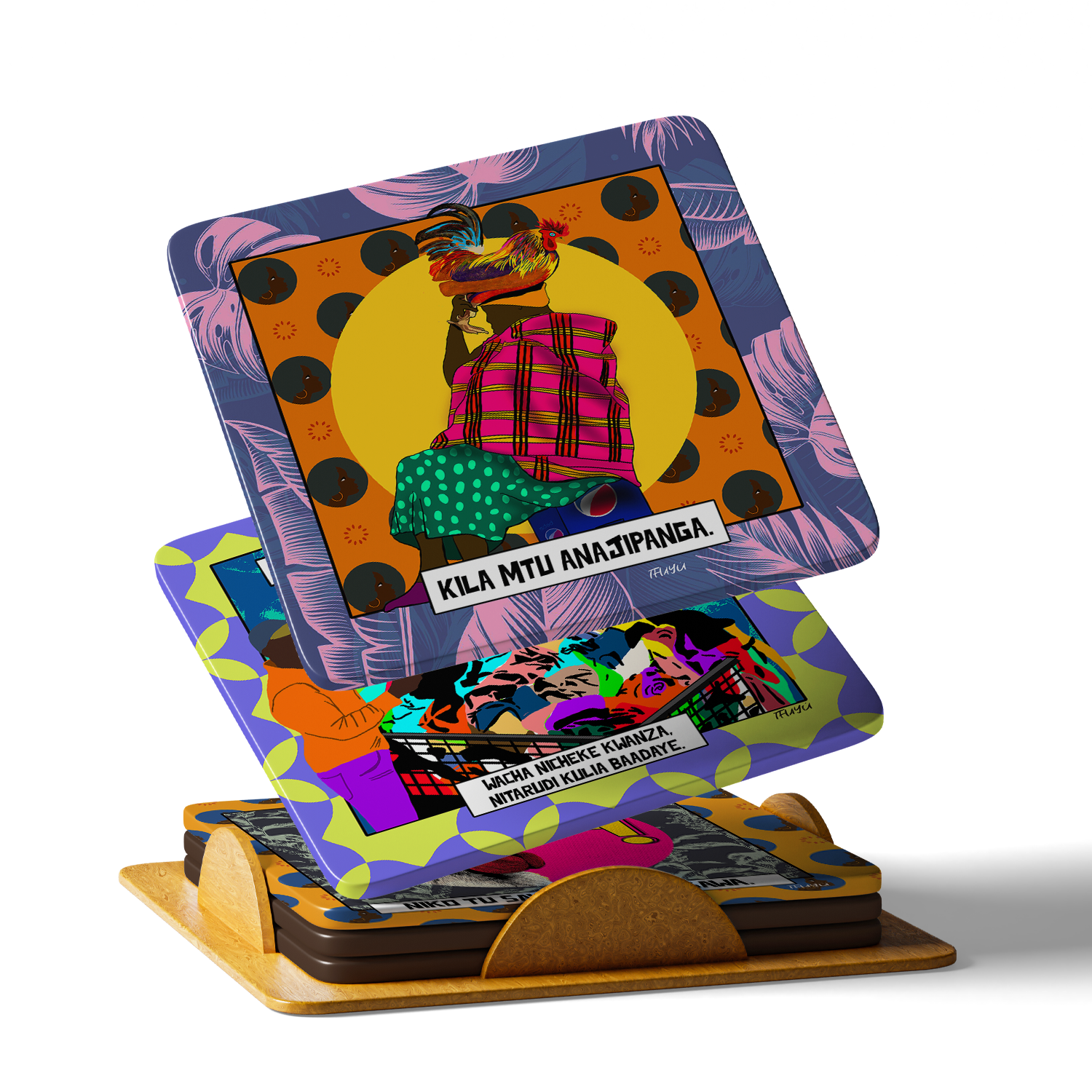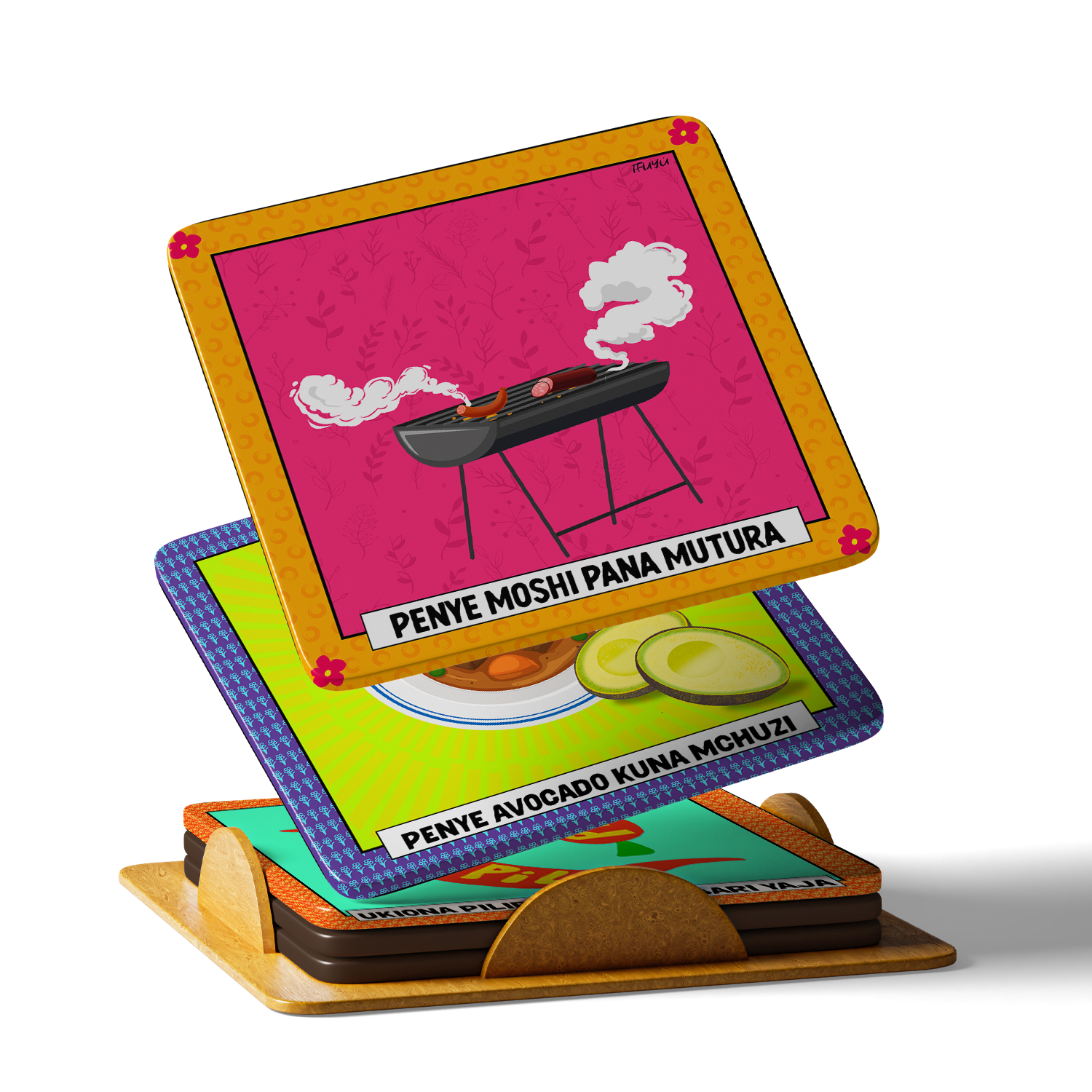 Nothing beats a good Swahili saying, and this Leso-inspired coaster set is a perfect blend of culture, humor, and nostalgia. Designed to bring the vibes of coastal leso prints to your table, this pack of four features classic proverbs that capture everyday Kenyan life. Perfect for your dining table, coffee table, or gifting to a true Kenyan at heart. Because in every home, a good saying goes a long way.