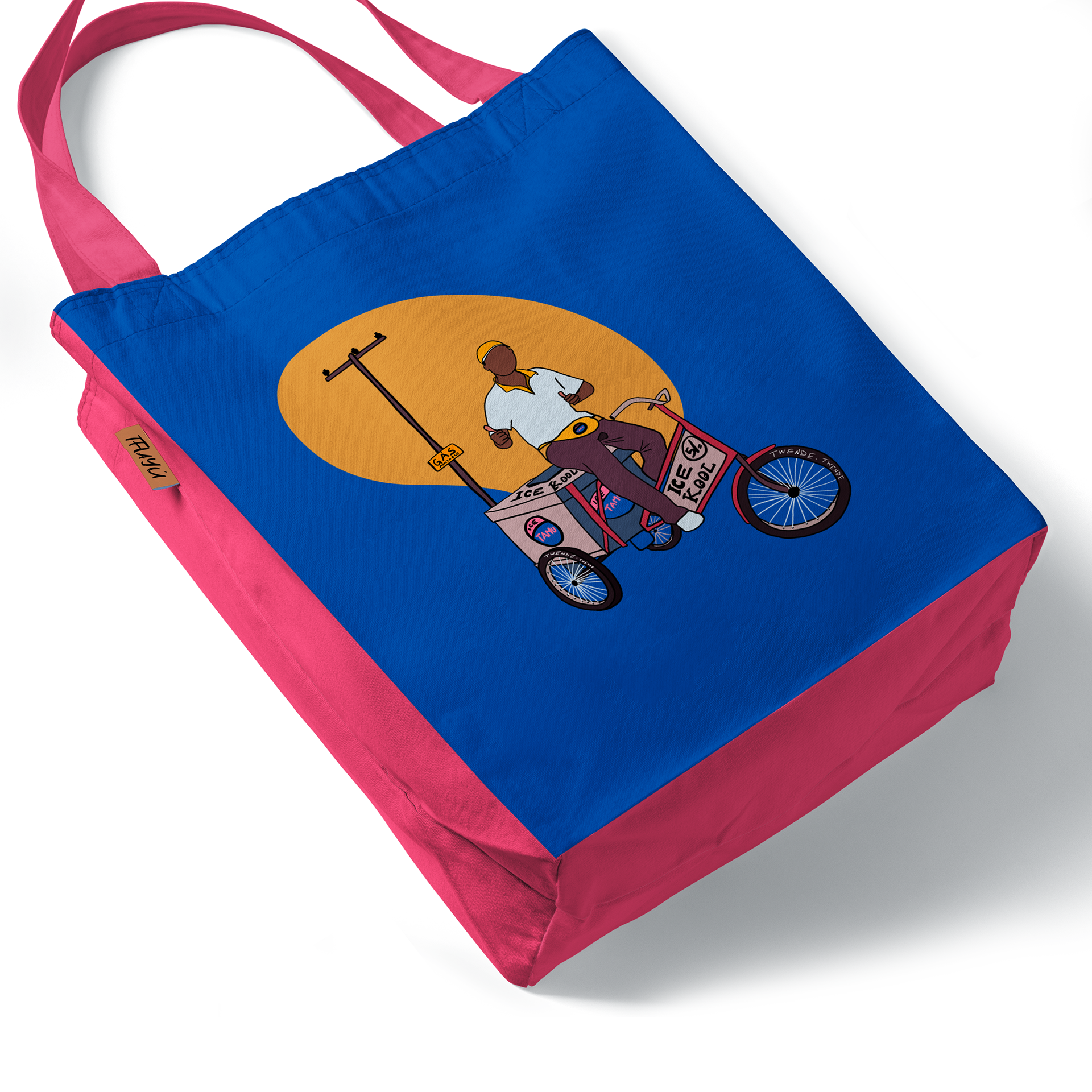Remember those ice cool guys who pedaled through estates on their bicycles, ringing their bells, selling ice cream and ice cools, bringing joy to every child’s day? This tote is a nostalgic salute to them—and to the many “No, it’s too cold” warnings from our parents that we conveniently ignored.